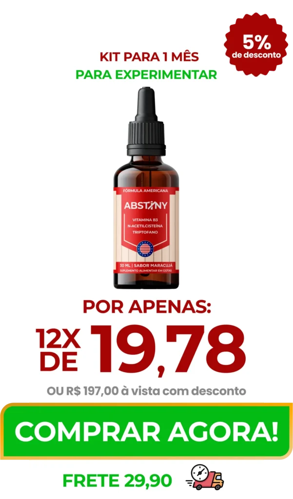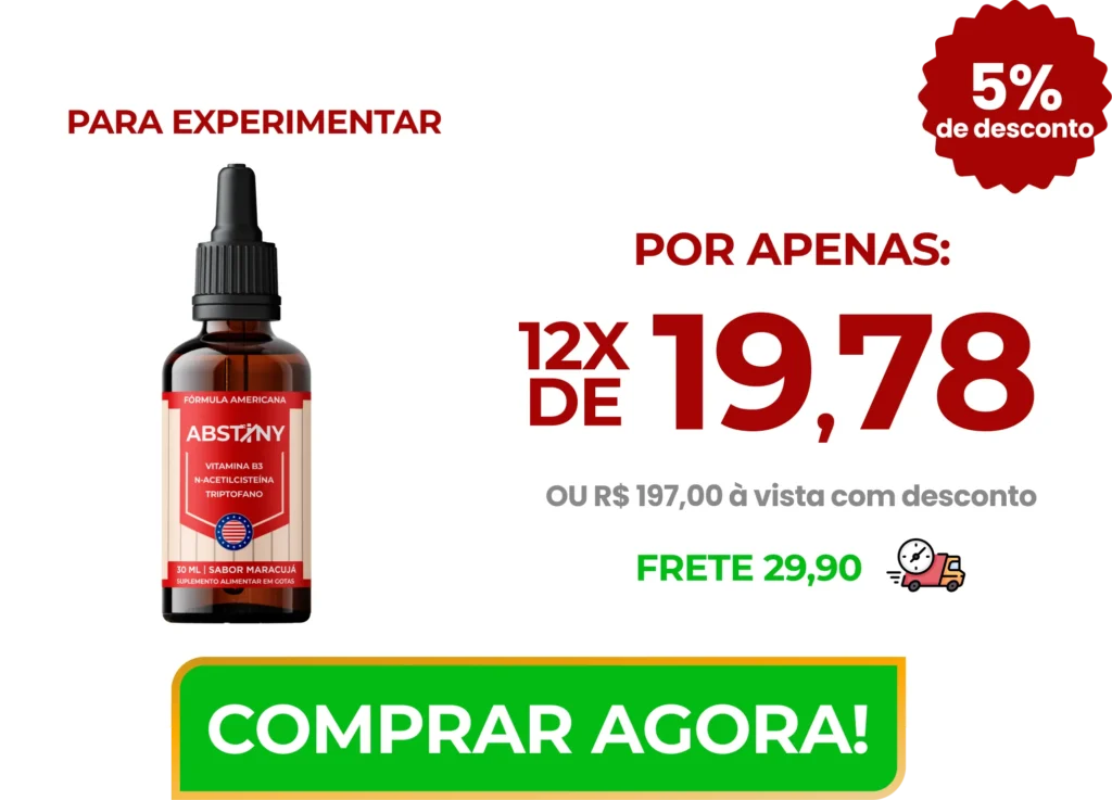 Este site é 100% protegido contra recursos de má intenção. Suas informações pessoais são sigilosas segundo a nossa Política de Privacidade e a entrega é garantida! O Abstiny é vendido diariamente para pessoas de todo o Brasil.