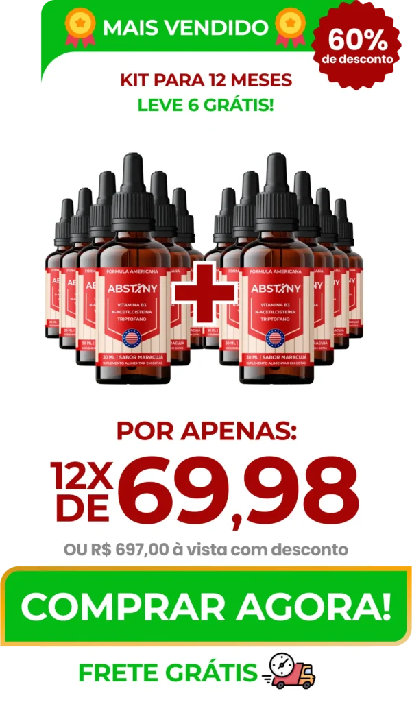 A fórmula exclusiva do ABSTINY ajuda a diminuir os desejos intensos e a compulsão associados ao vício. Isso permite que você se sinta mais calmo, controlado e capaz de resistir às tentações.